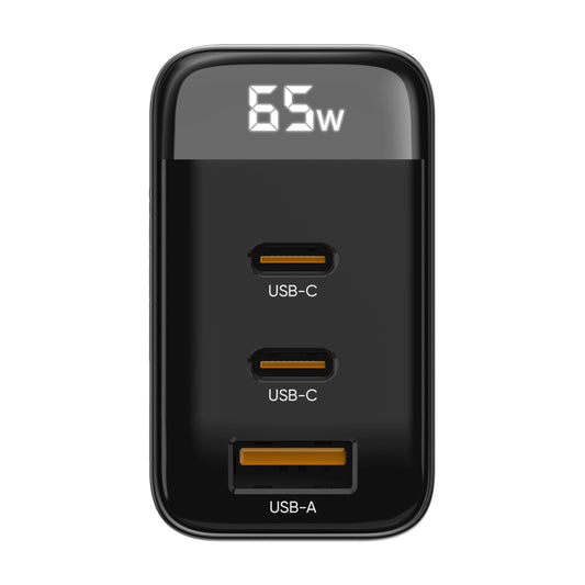 ZIZO PowerVault 65W GaN Dual USB-C + USB-A Wall Charger with Digital Power Display - Black