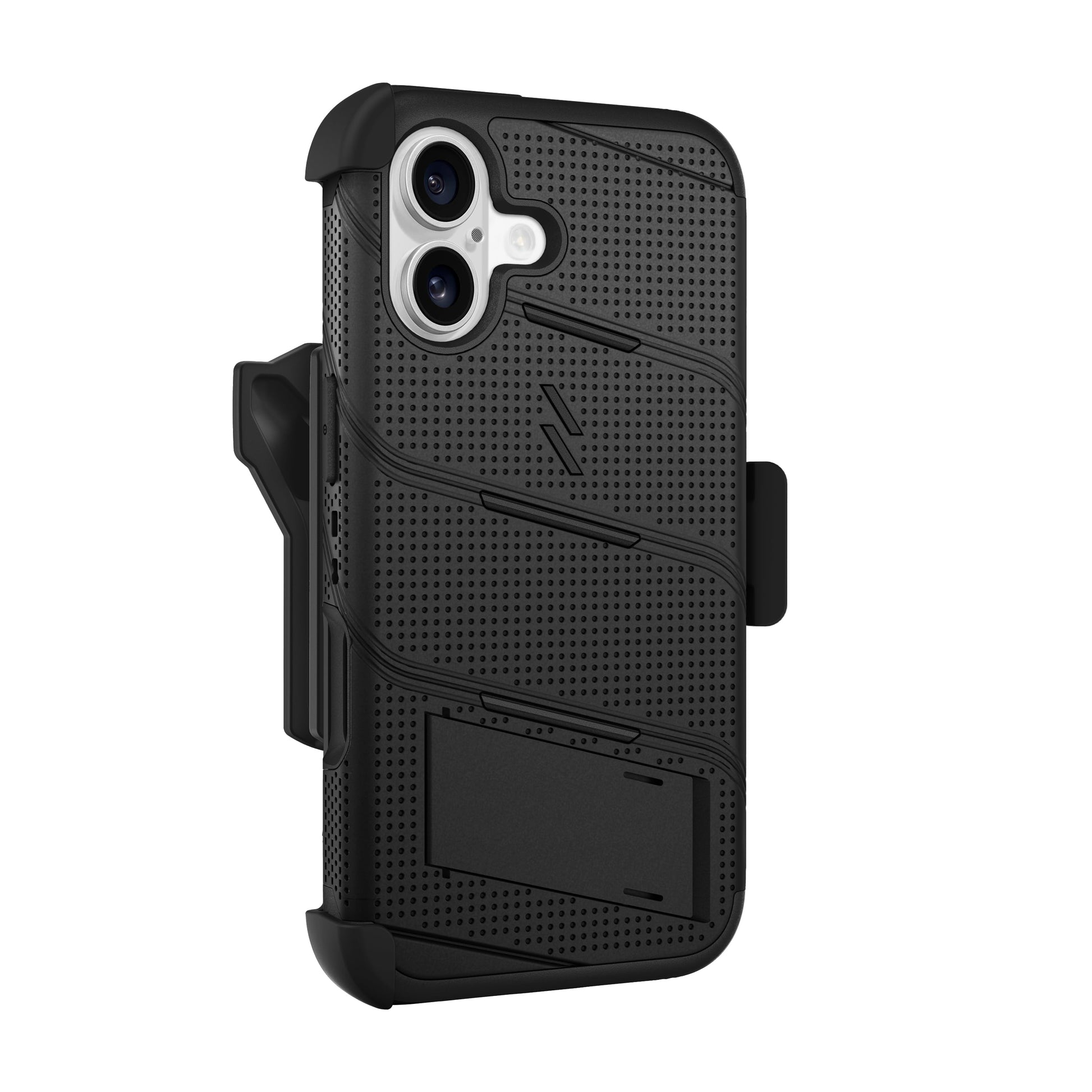 Ultimate Protection, Engineered for Your Adventures. The ZIZO BOLT MagSafe Series is more than just a case — it's a complete protection system engineered to safeguard your phone from life's unexpected challenges. Built to exceed industry standards, the BOLT Series has undergone rigorous testing (including MIL-STD 810G 516.6 drop tests) to ensure your phone survives even the most intense drops and impacts. The patented dual-layer design provides 360° defense. A rugged outer shell guards against scratches and scuffs, while the inner core's shock-absorbing technology cushions your phone from internal damage. But the BOLT Series doesn't stop at rugged protection. Now featuring built-in MagSafe compatibility, it allows for seamless connection to MagSafe chargers and accessories — delivering fast wireless charging and magnetic alignment without removing your case. It also features a built-in kickstand for convenient hands-free viewing in both portrait and landscape orientations. Whether you're watching videos, video conferencing, or browsing, the BOLT Series has you covered. And for added versatility, it includes a holster that doubles as a belt clip for easy carrying. A crystal-clear tempered glass screen protector with 9H hardness and a handy lanyard complete the package, offering unmatched value and all-around defense.
