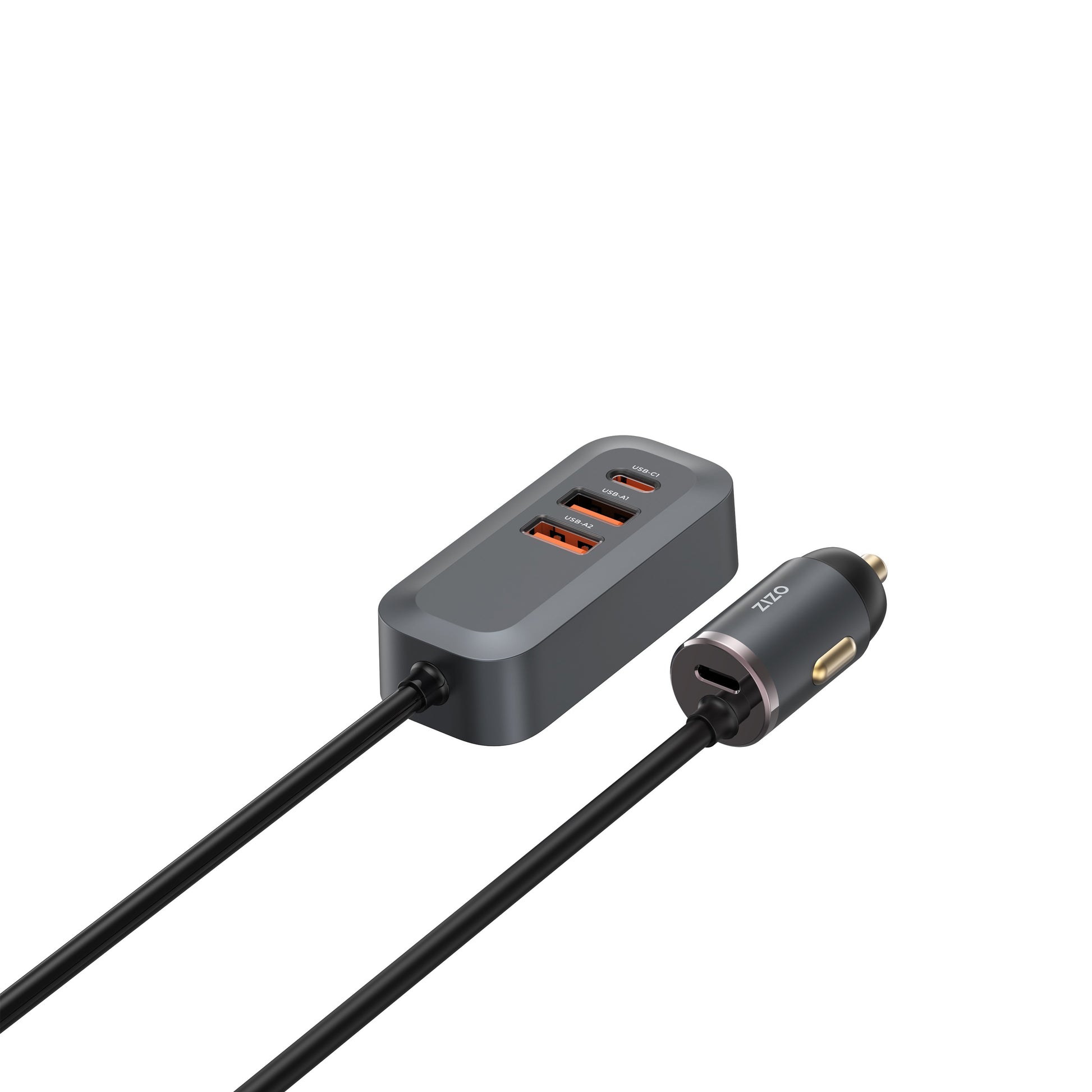 The Ultimate Travel Companion. Never worry about a dead battery on the road again! The ZIZO PowerVault 4-Port Car Charging Hub is your ultimate travel companion, ensuring all your devices stay powered up on any journey. With a massive 100W total output, this hub can simultaneously charge multiple devices at high speed, including smartphones, tablets, laptops, and more. Its four charging ports (2 USB-A and 2 USB-C) offer universal compatibility, while the extended 1.5-meter (4.9-foot) cable provides ample reach for both front and backseat passengers, eliminating charging cable clutter and maximizing convenience. This power hub is equipped with advanced charging technology, including Power Delivery (PD) with up to 45W output for fast charging iPhones, iPads, and Android devices, and 30W per USB-A port for efficient charging of a wide range of devices. Built with premium ABS + PC materials, this car charger is durable, heat-resistant, and features advanced safety protection against overcharging, short circuits, and surges, providing peace of mind on every trip. USB-A Port (A1/A2): 5V/3A, 9V/3A, 12V/3A (up to 30W) USB-C Port (C1/C2): 5V/3A, 9V/3A, 12V/3A, 15V/3A, 20V/2.25A (up to 45W) Total Power Output: 100W Max Cable Length: 1.5 meters (4.9 feet) Material: Premium ABS + PC (heat-resistant & durable)