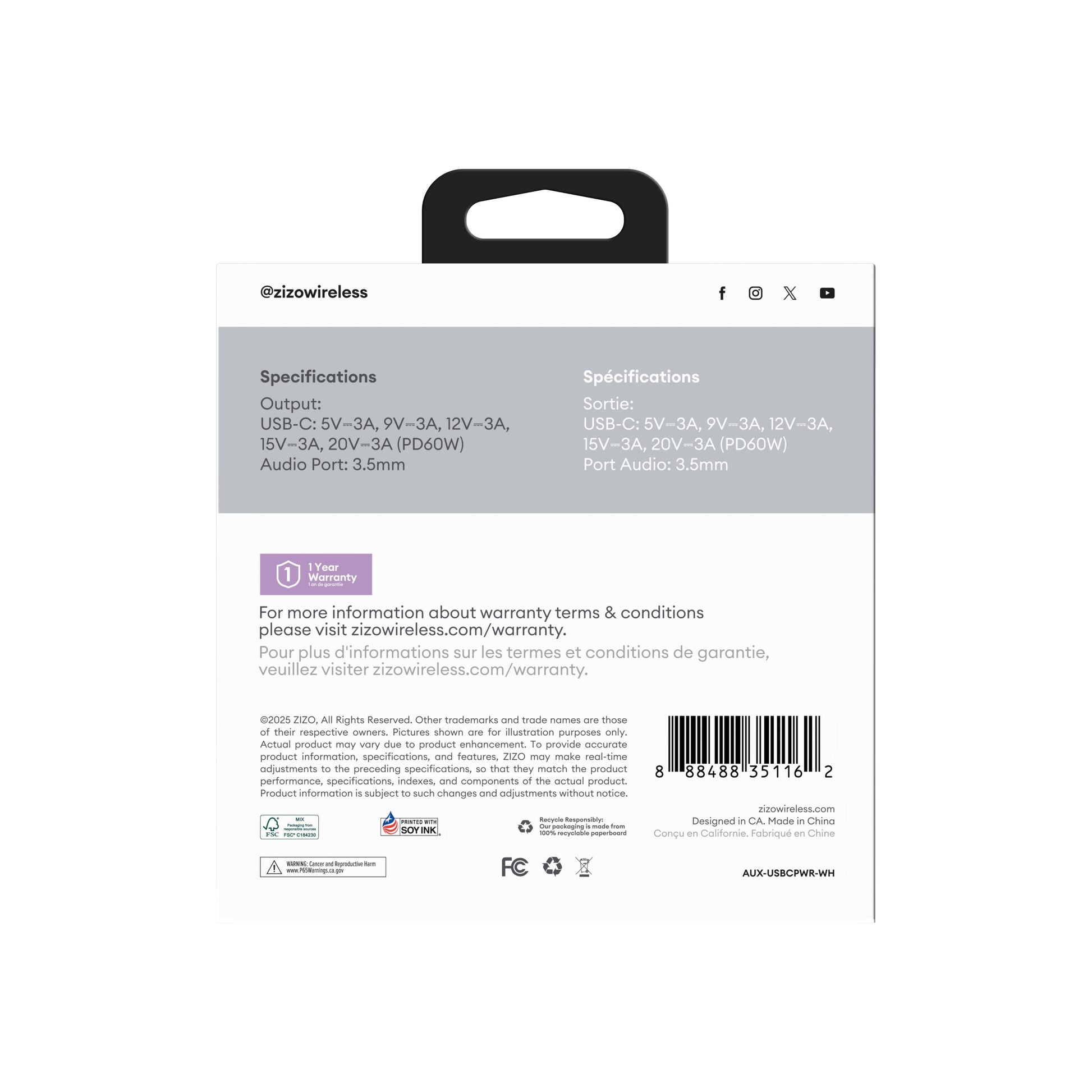 SKU:AUX-USBCPWR-WH